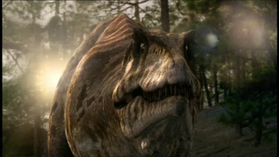 The Tyrannosaur knows this is the end and thinks of his un-born child for one moment. He always wanted to teach him the way of battle and now he never will. Using all that is left of his strength, the Tyrant King Bellows and kicks the Giganotosaurus off. He then proceeds to ram him into into a jagged rock; as the Giganotosaurus is dazed, the Rex grabs his neck and finally breaks it under the 20,000 pounds of pure pressure.